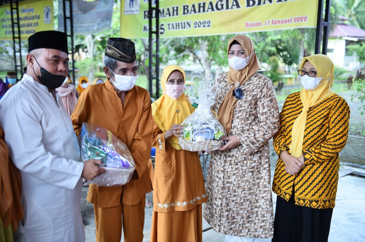 Bintan (infoluarbiasa.com)-Ketua Lembaga Koordinasi Kesejahteraan Sosial (LKKS) Kepri Hj Dewi Kumalasari Ansar menyerahkan bantuan untuk para lanjut usia (lansia) yang menempati Rumah Bahagia Bintan, Kampung Karang Rejo, Kelurahan Kawal, Kecamatan Gunung Kijang, Kabupaten Bintan, Ahad (17/4).